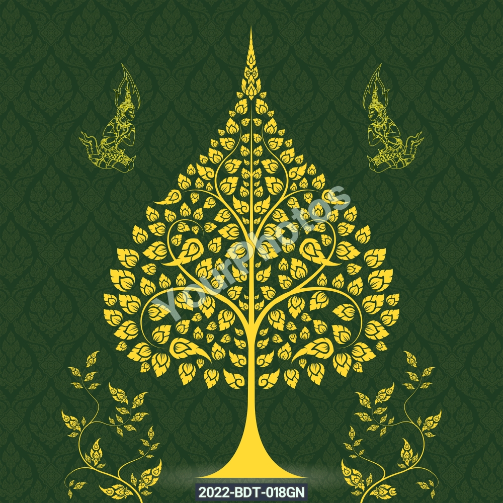 สติ๊กเกอร์ตกแต่งห้องพระ วัด ร้านอาหารไทย ร้านนวด-สปาไทย และสถานที่ต่างๆ ออกแบบใหม่ ภาพต้นโพธิ์ทอง เทวดาคู่ พร้อมพื้นหลังลายไทย. มีให้เลือกหลายขนาด หลายสี เลือกตกแต่งตามความต้องการ